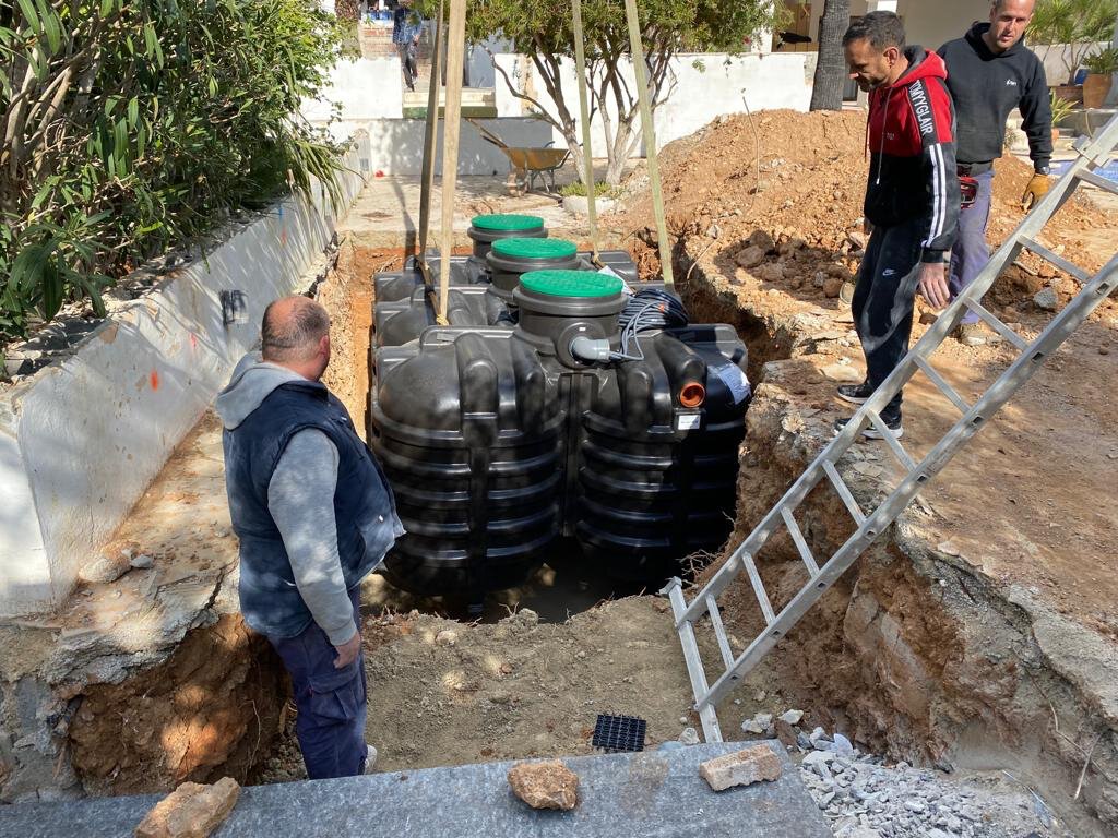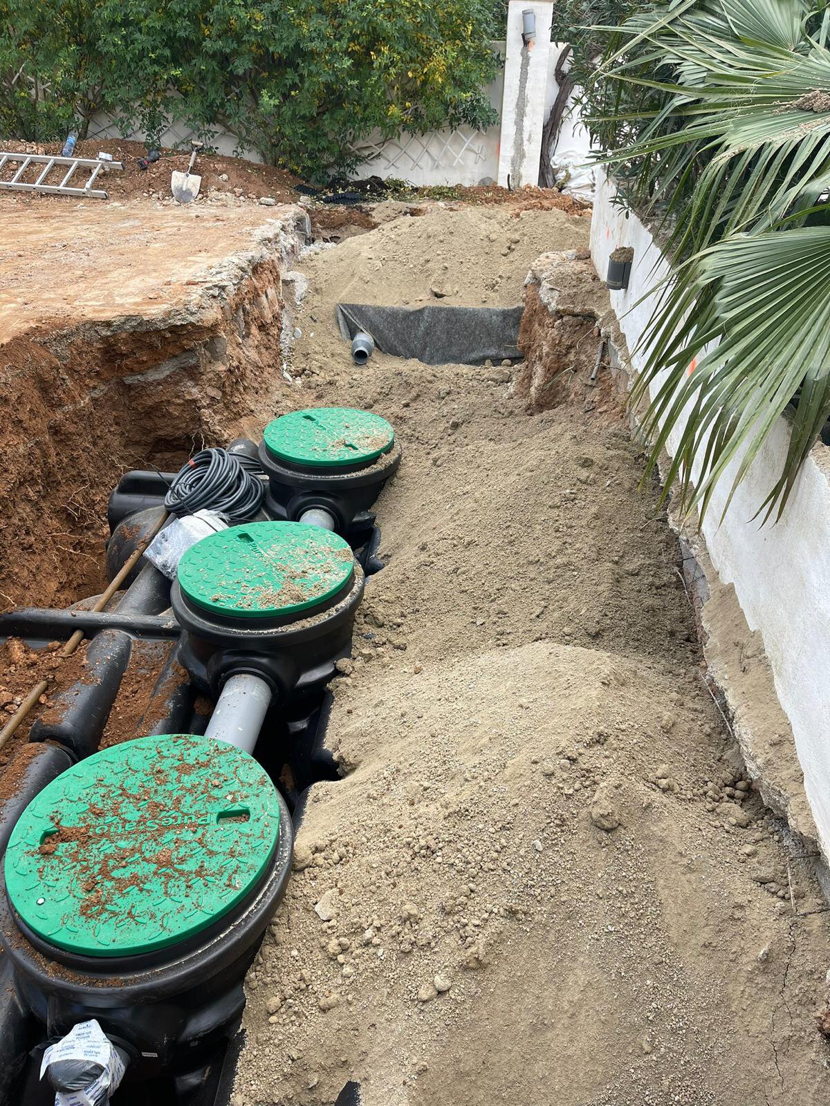 - Einbau des septischen Tanks und des Drainage-Systems