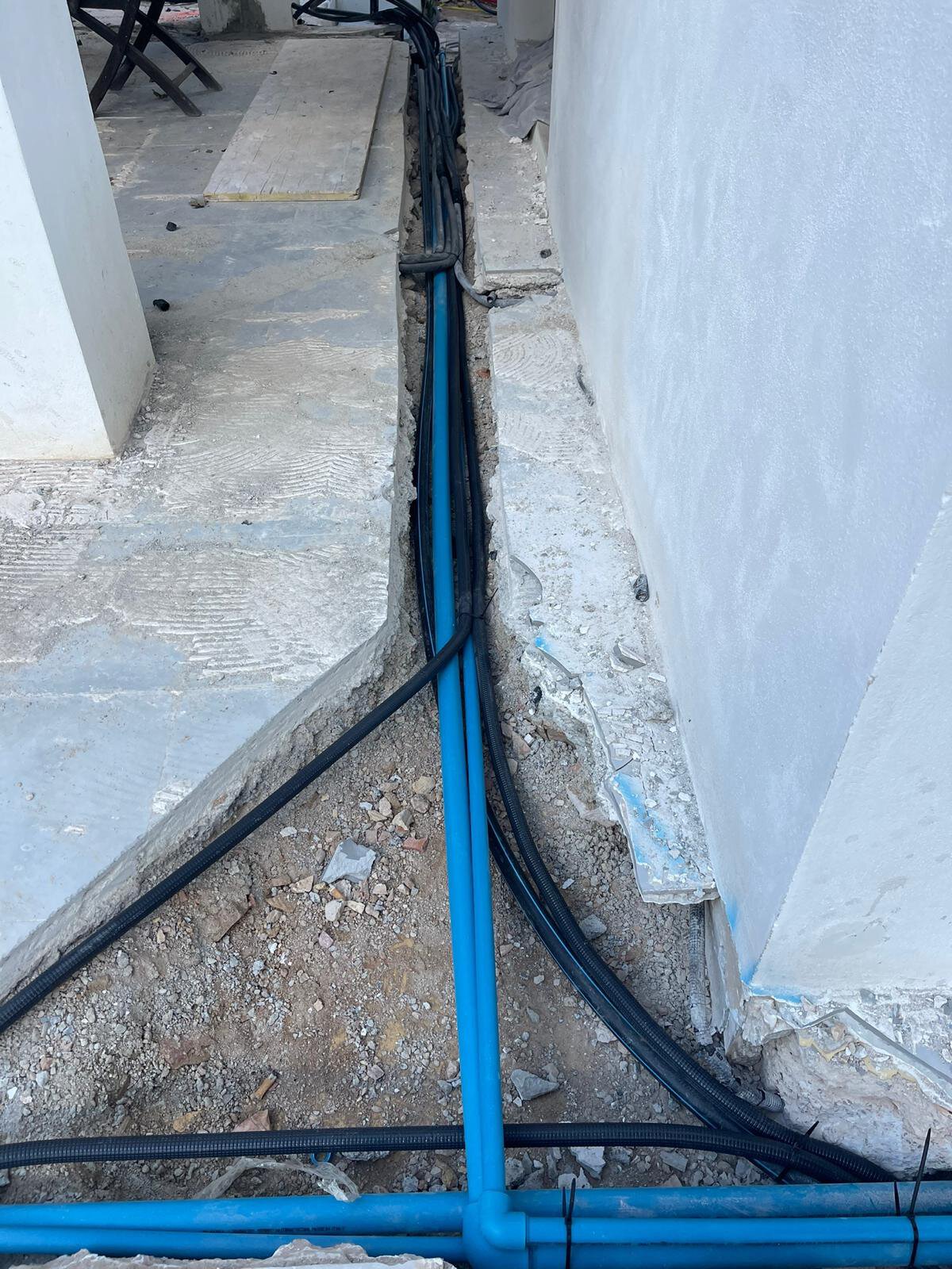 - Verlegung von Leerrohren für die neuen elektrischen Installationen im Außenbereich