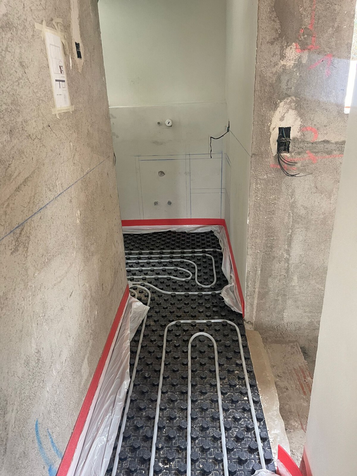 - Aufbau des Estrichs mit Verlegung der Fußbodenheizung in allen Räumen