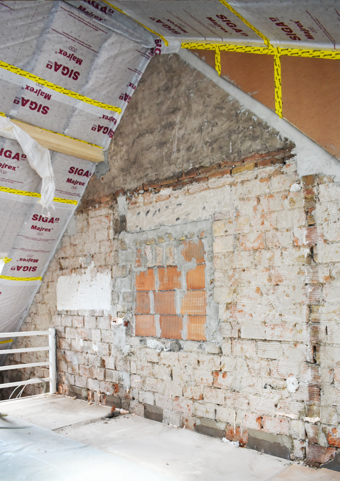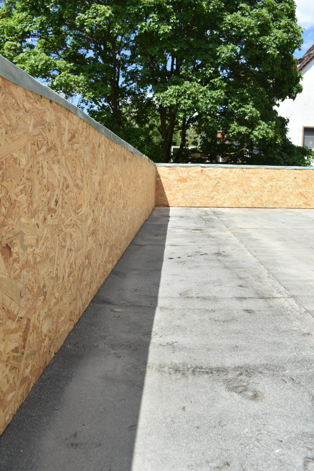 - Beginn des Ausbaus des Dachgeschosses, Dachabdichtung und Herstellung der Attika