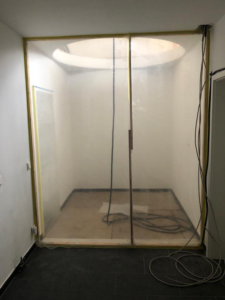 - – Vorbereitung der Fußbodenfräsung für die Installation der Fußbodenheizung