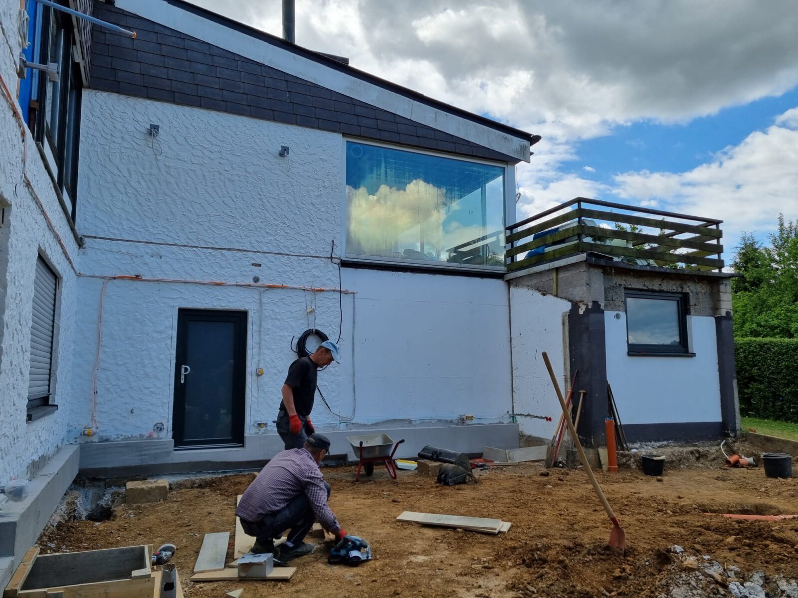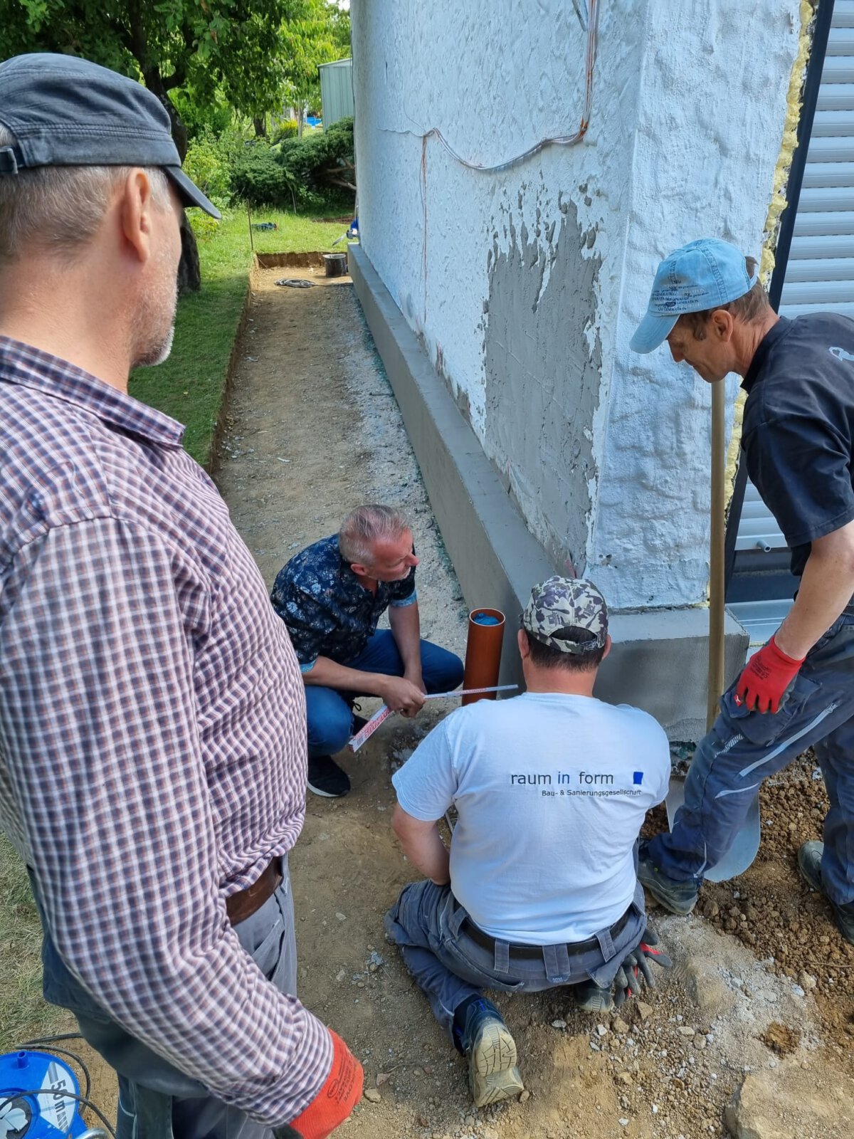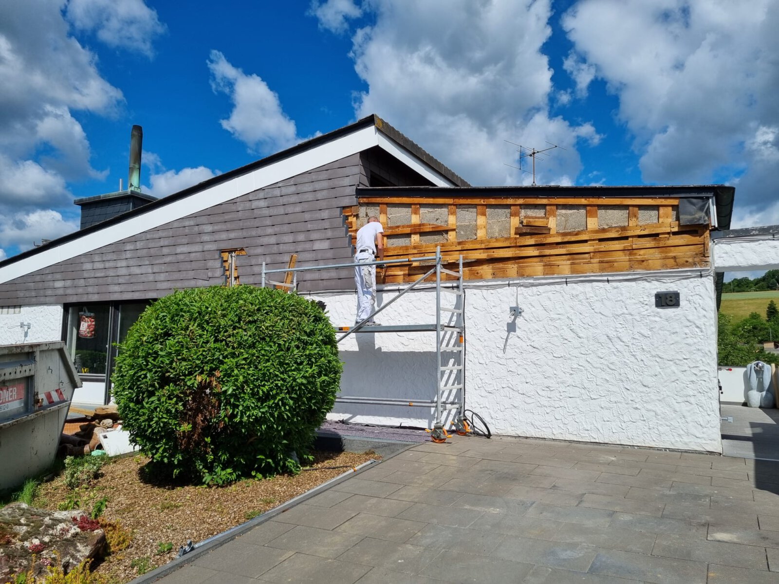 - – Vorbereitungen an der Fassade für die Anbringung des Wärmedämmverbundsystems