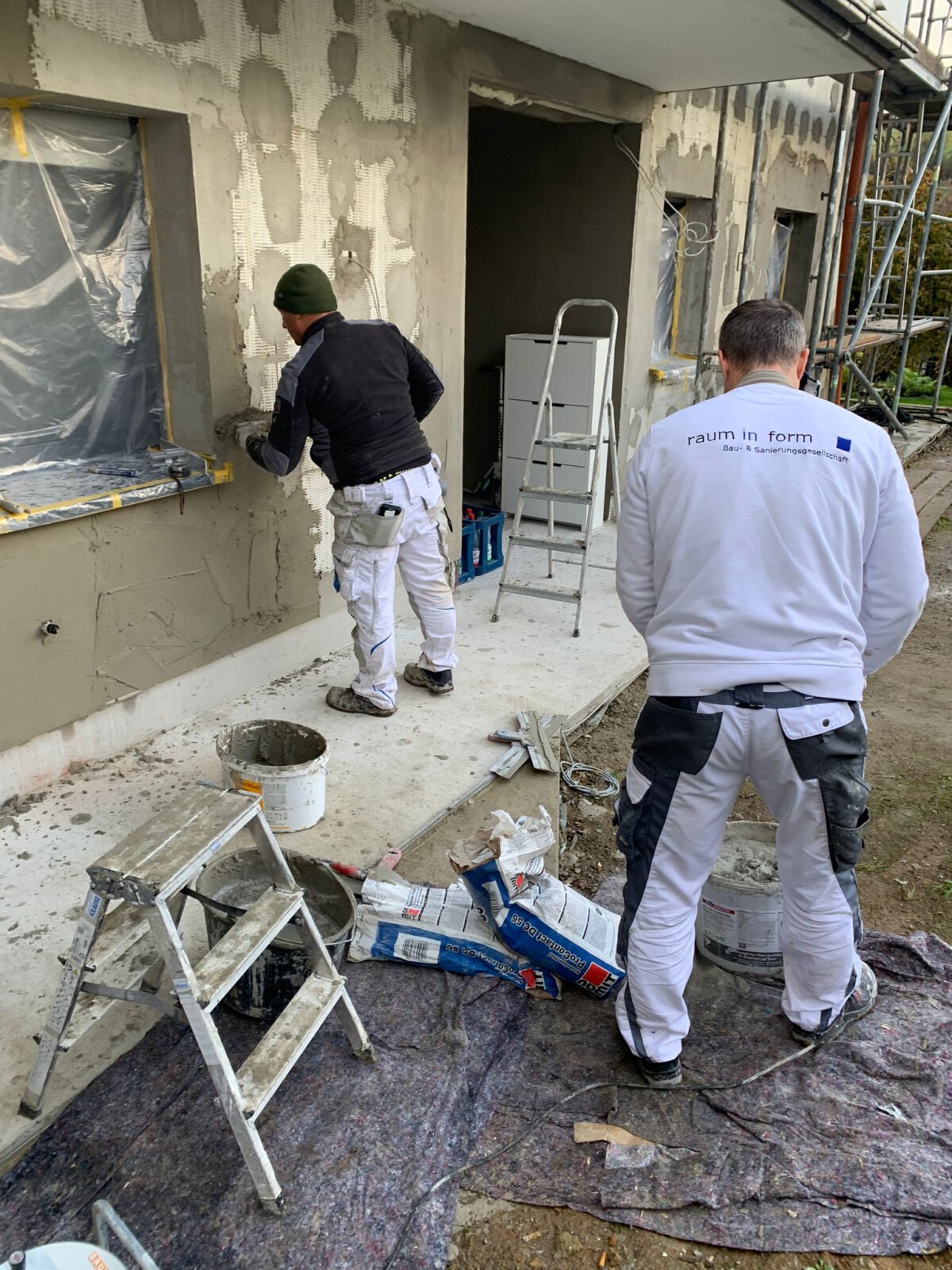 - Unterputz aus Zement an den Wänden im Außenbereich anbringen