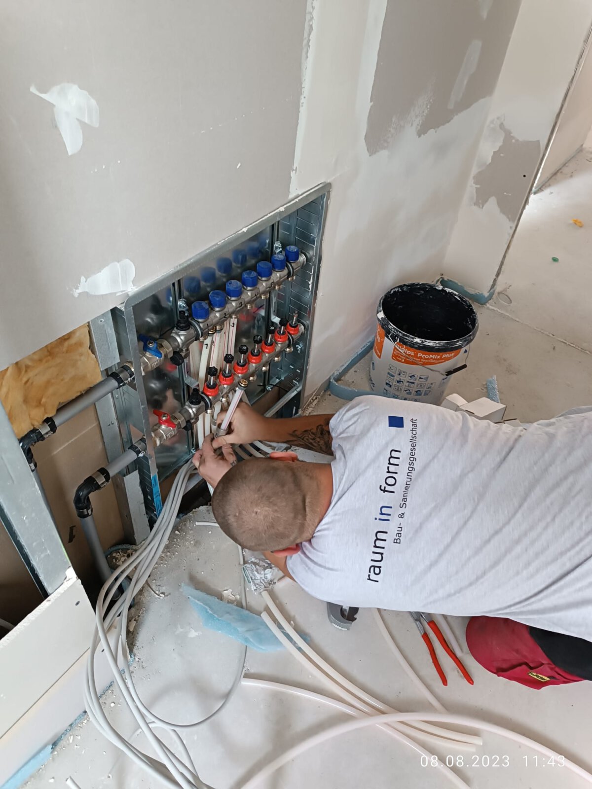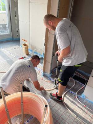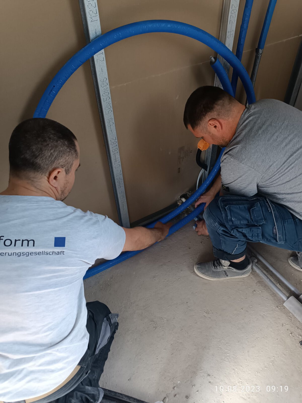 • Verlegung der Leitungen für die Handtuchheizkörper