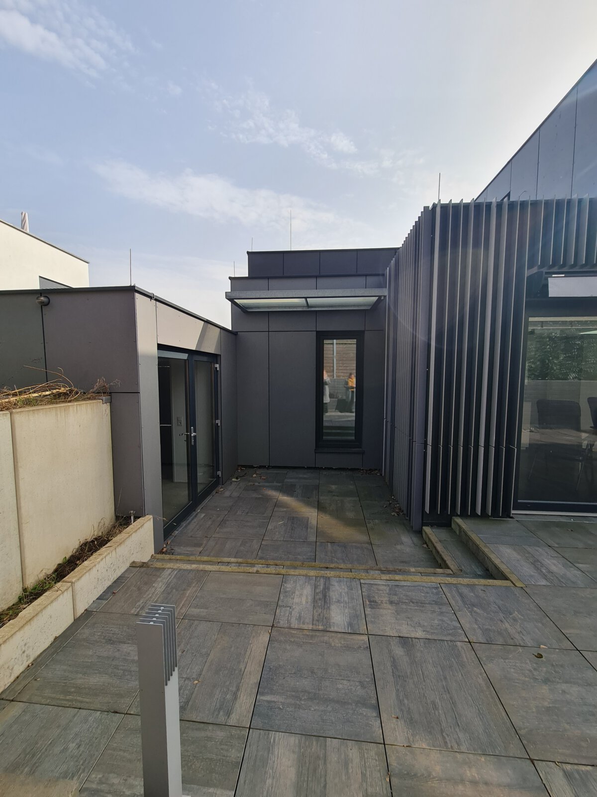 Mit der Aufstockung des 2. Obergeschosses wird in den wettergünstigen nächsten Monaten begonnen. Dort soll ein weiterer großzügiger, lichtdurchfluteter Lebensraum geschaffen werden, angrenzend an eine Dachterrasse mit tollem Ausblick, in die ein Oberlicht integriert wird, um den darunter liegenden Raum zusätzlich zu belichten.