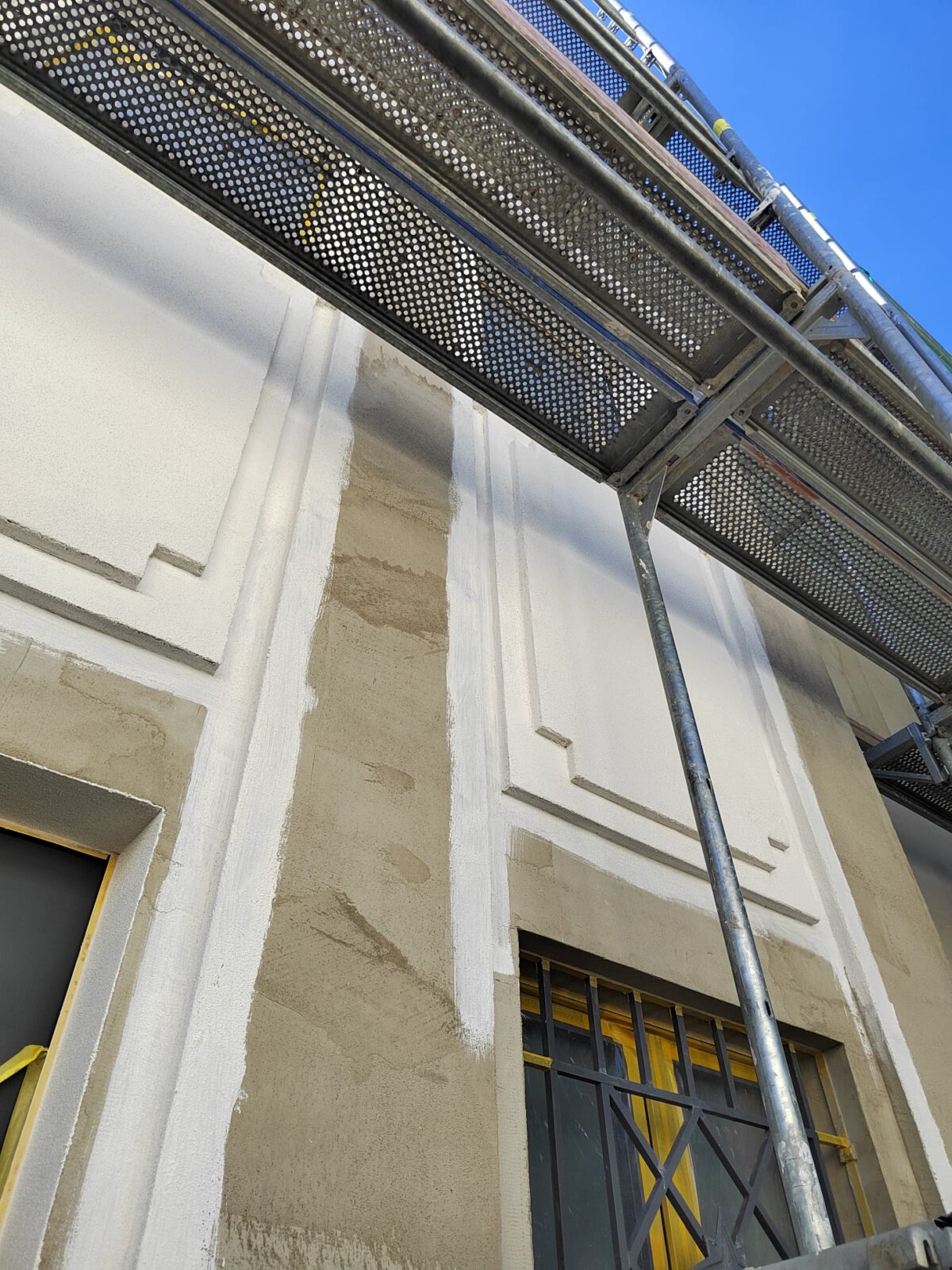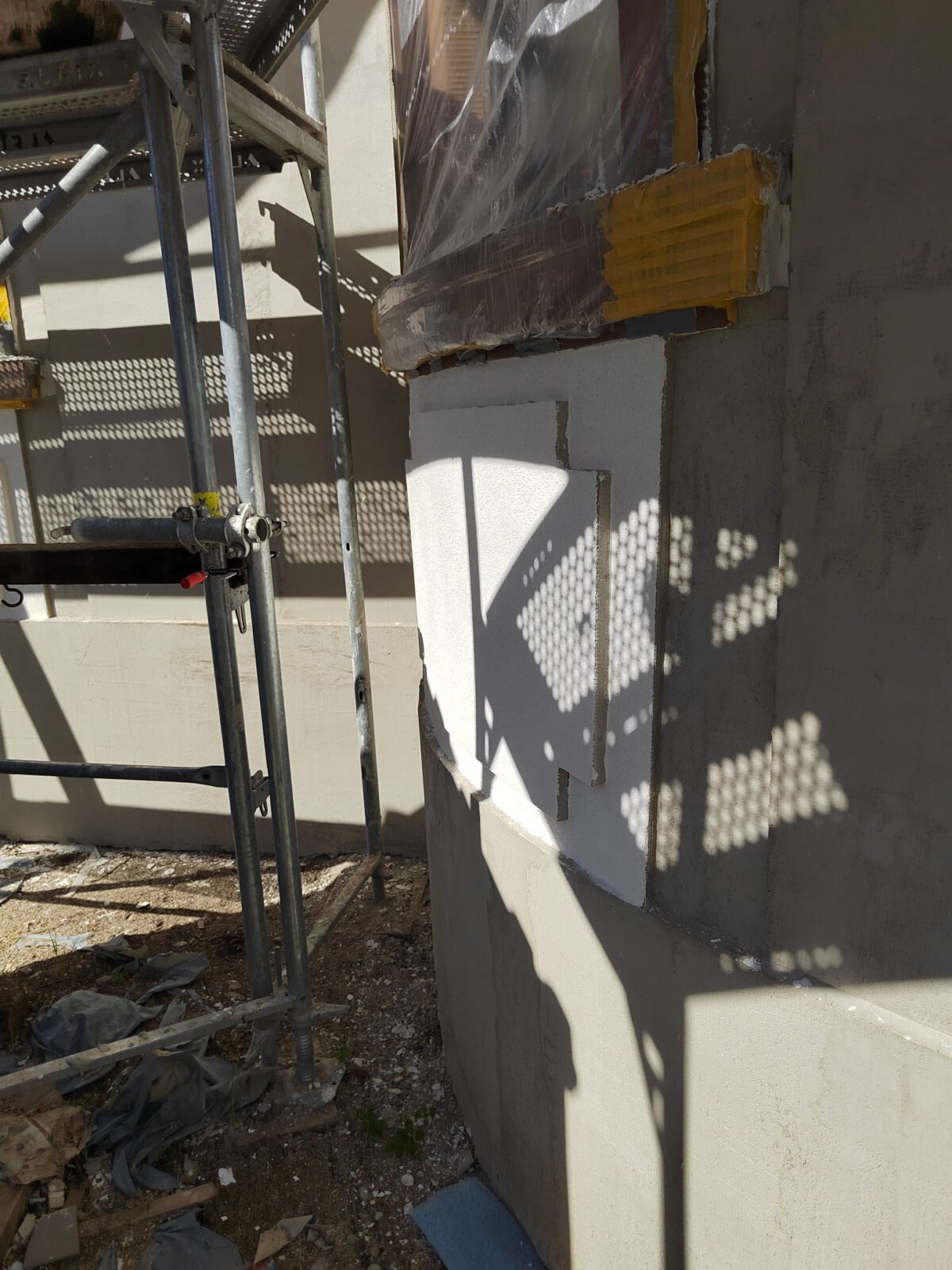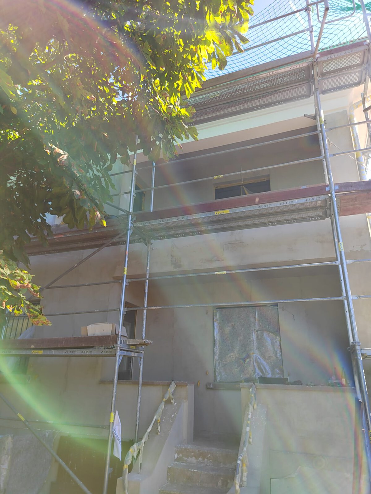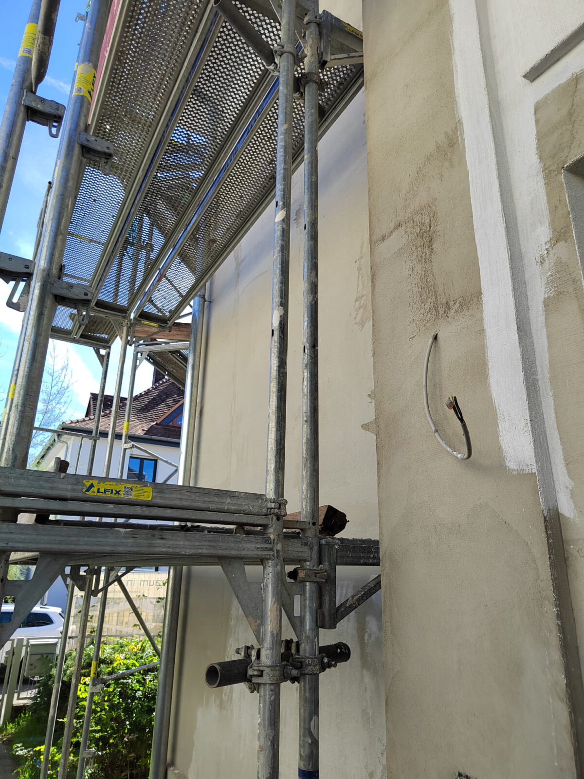 - Vorbereitung der Fassade für die Malerarbeiten