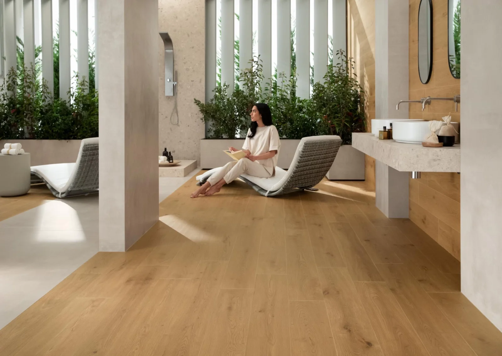 Mit der neuen Kollektion Entice vereint Atlas Concorde die Wärme und Eleganz des Eichenholzes mit der Funktionalität von Feinsteinzeug.
