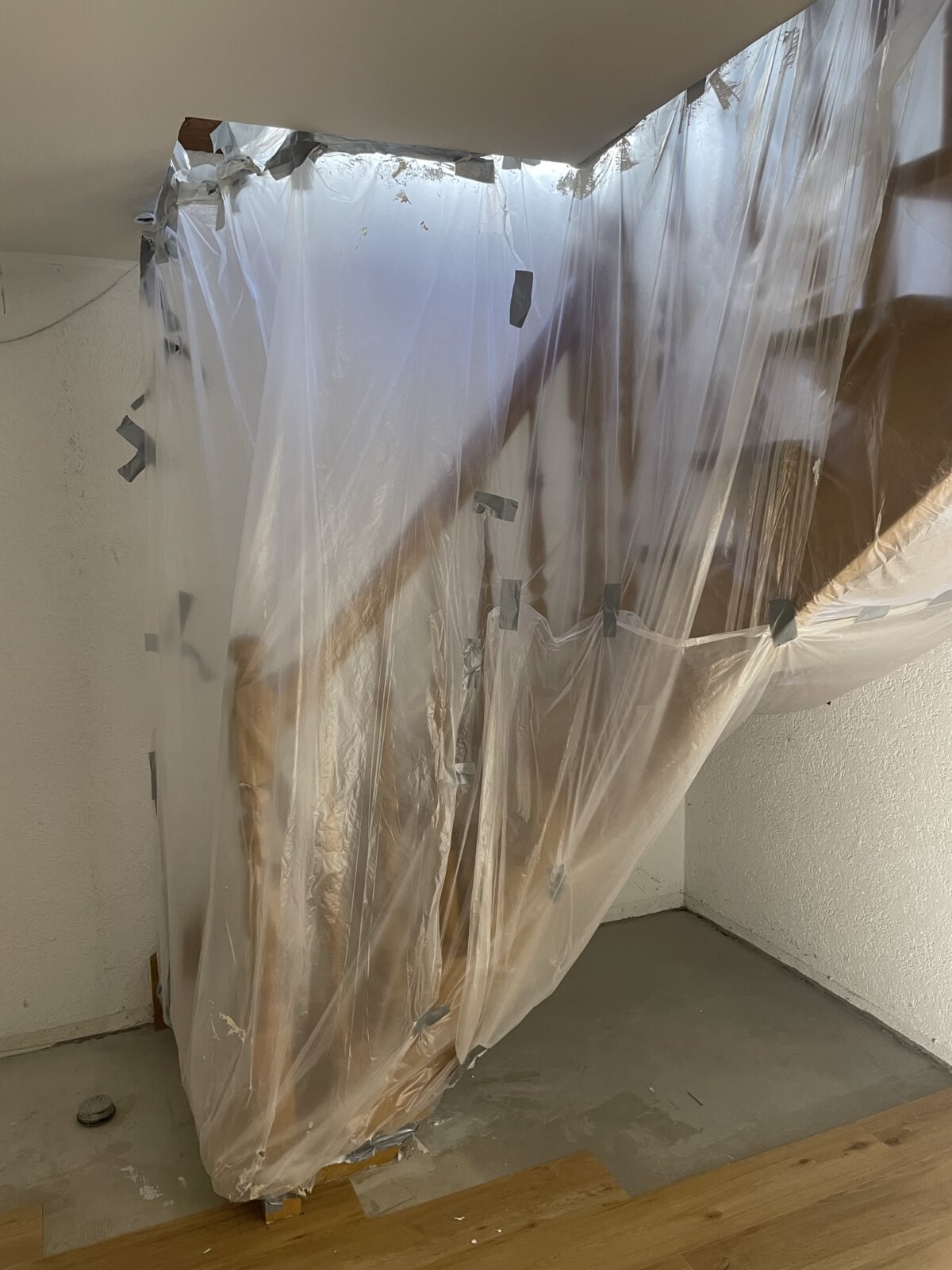 - Abbrucharbeiten der Holzverkleidungen und des Trockenbaus