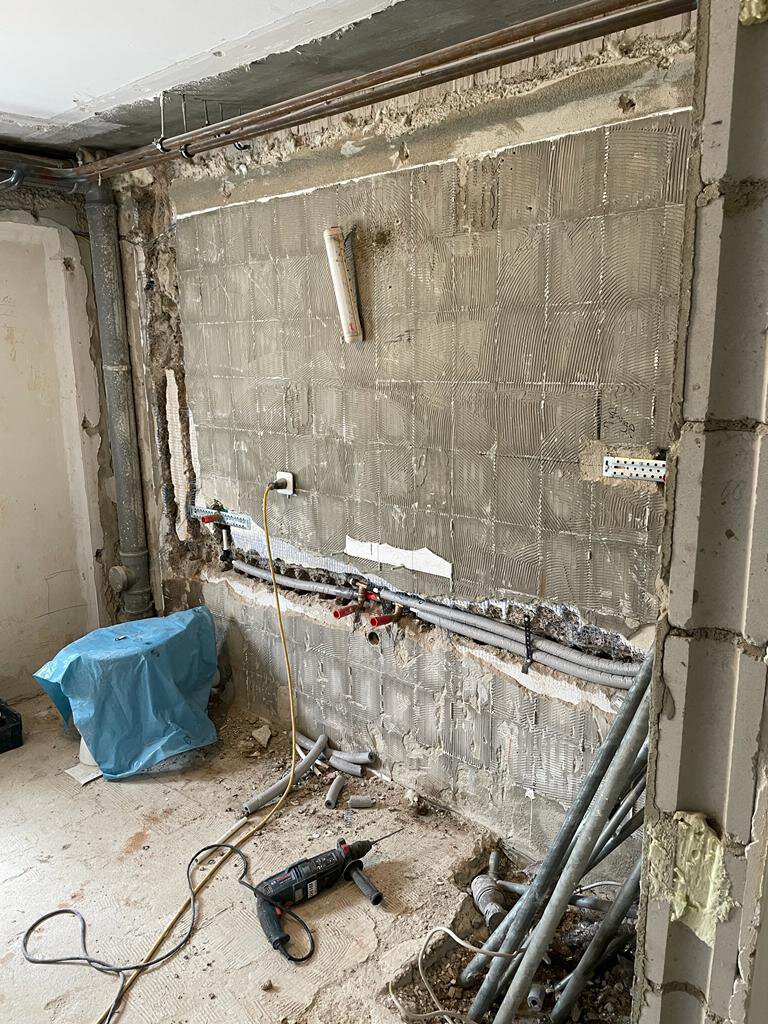 - Beginn der Elektroarbeiten (Elektroinstallationen, Leitungen prüfen, Schlitze herstellen, neue Kabel verlegen, neue Schaltkreise)