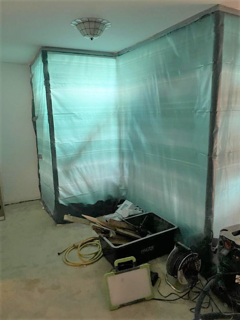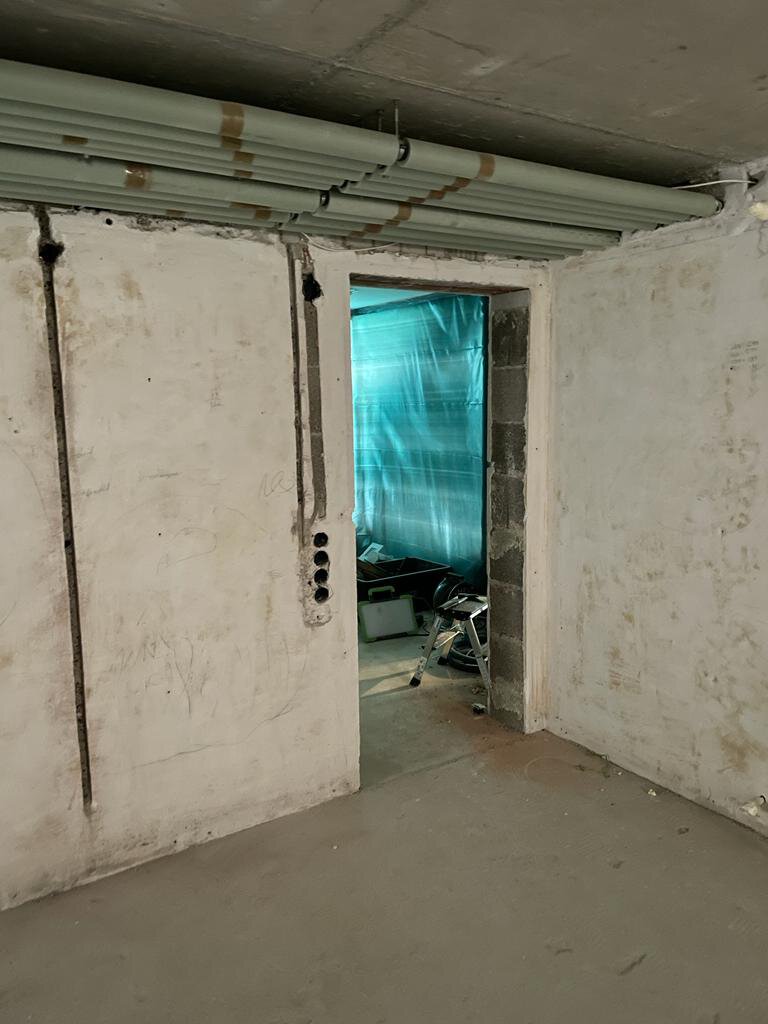 - Demontage der Einbaumöbel, Ausbau der Türen und Zargen und Entfernen sämtlicher Bodenbeläge und Fliesen
