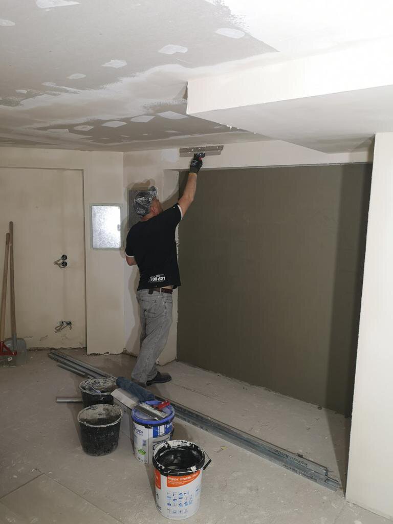 - Trockenbauarbeiten für Verkofferungen und der abgehängten Decke, spachteln und verputzen