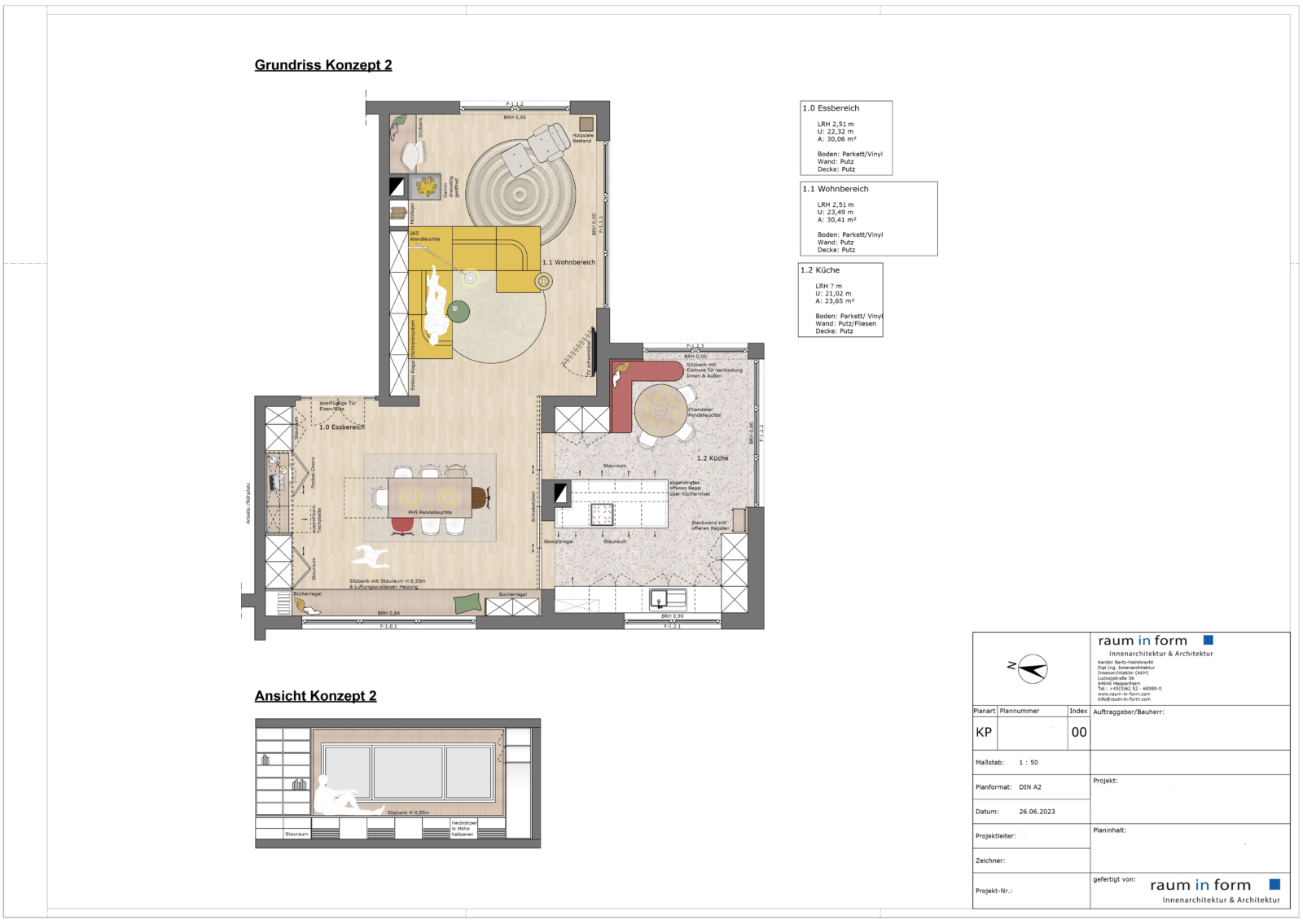 Im weiteren Verlauf des Projekts werden neben der abschließenden Finalkonzepte auch noch eine Beleuchtungskonzeption erstellt sowie Materialien und Produkte ausgewählt. Diese werden dann für die Kunden in einem Raumbuch zusammengefasst, das de Grundlage für die bauliche Umsetzung ist, die für das dritte Quartal dieses Jahres geplant ist.