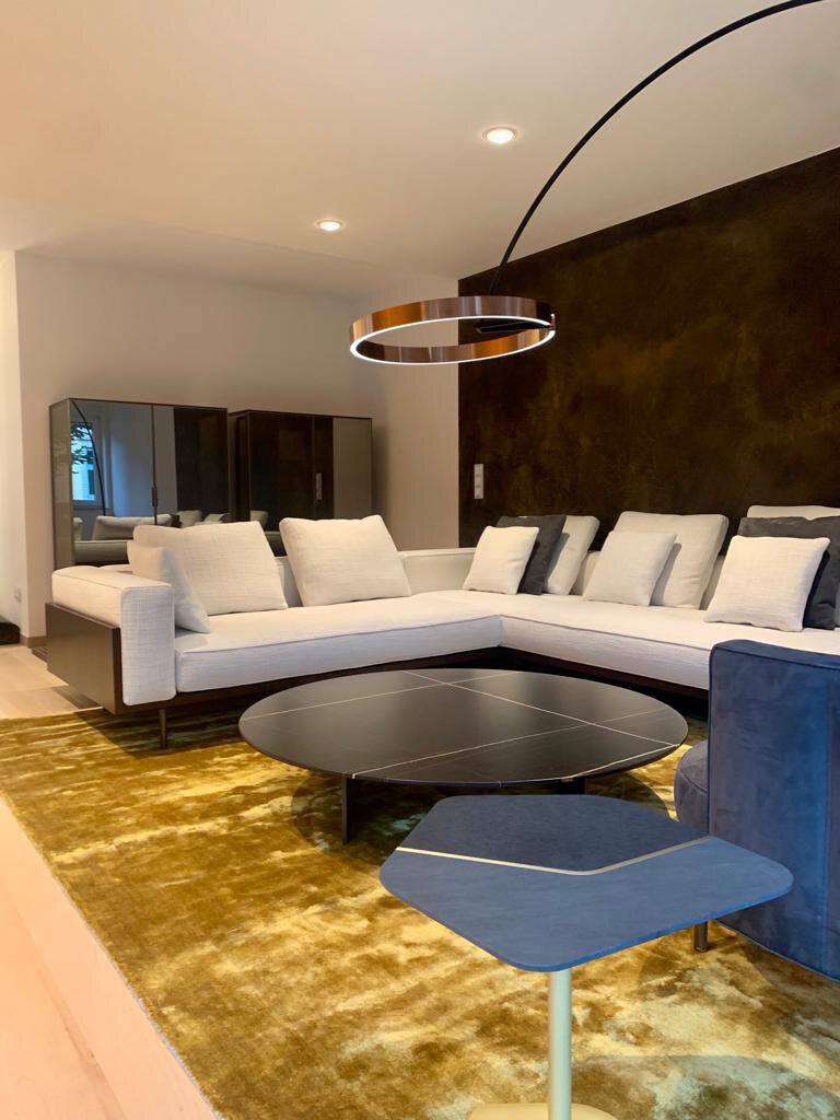 - Lieferung und Aufbau der vor Ort in Italien gemeinsam mit den Kunden ausgesuchten und individuell bemusterten komplett neuen Einrichtung von Minotti, Reflex und Rimadesio durch raum in form-Objekteinrichtungen