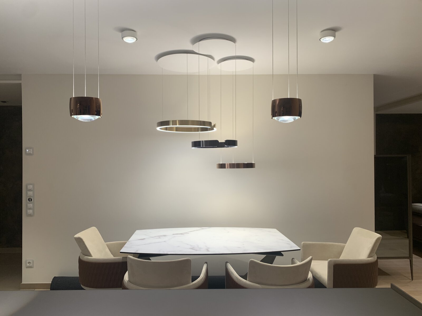 - Montage, Anschluss und Einstellung der hochwertigen Occhio- Lampen und der weiteren Beleuchtungskörper