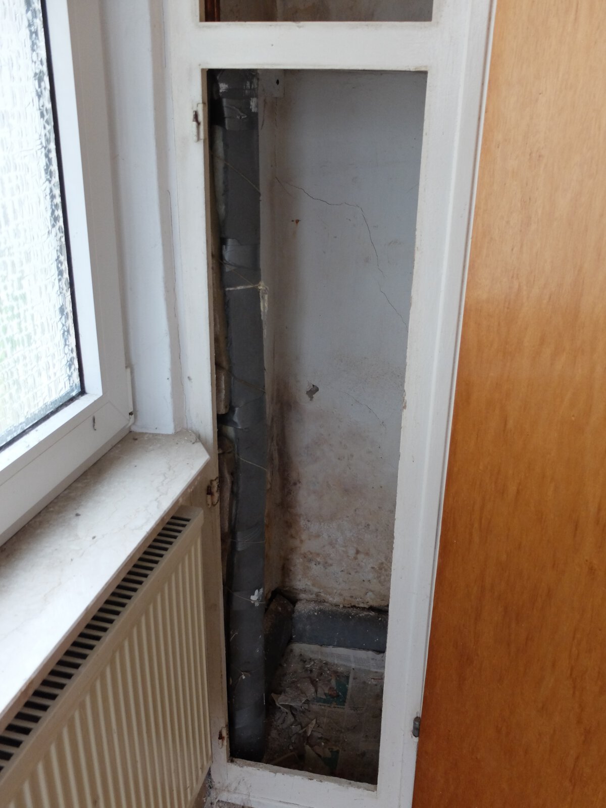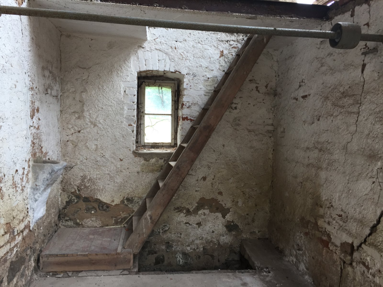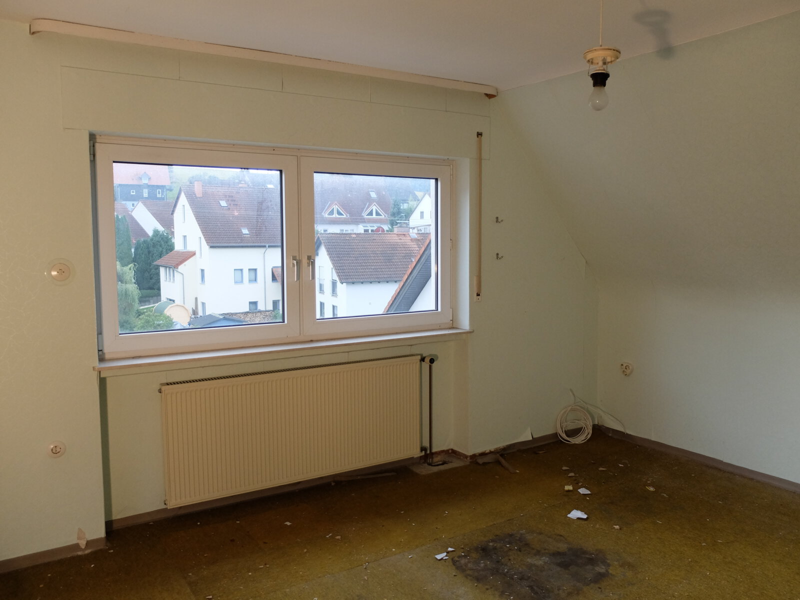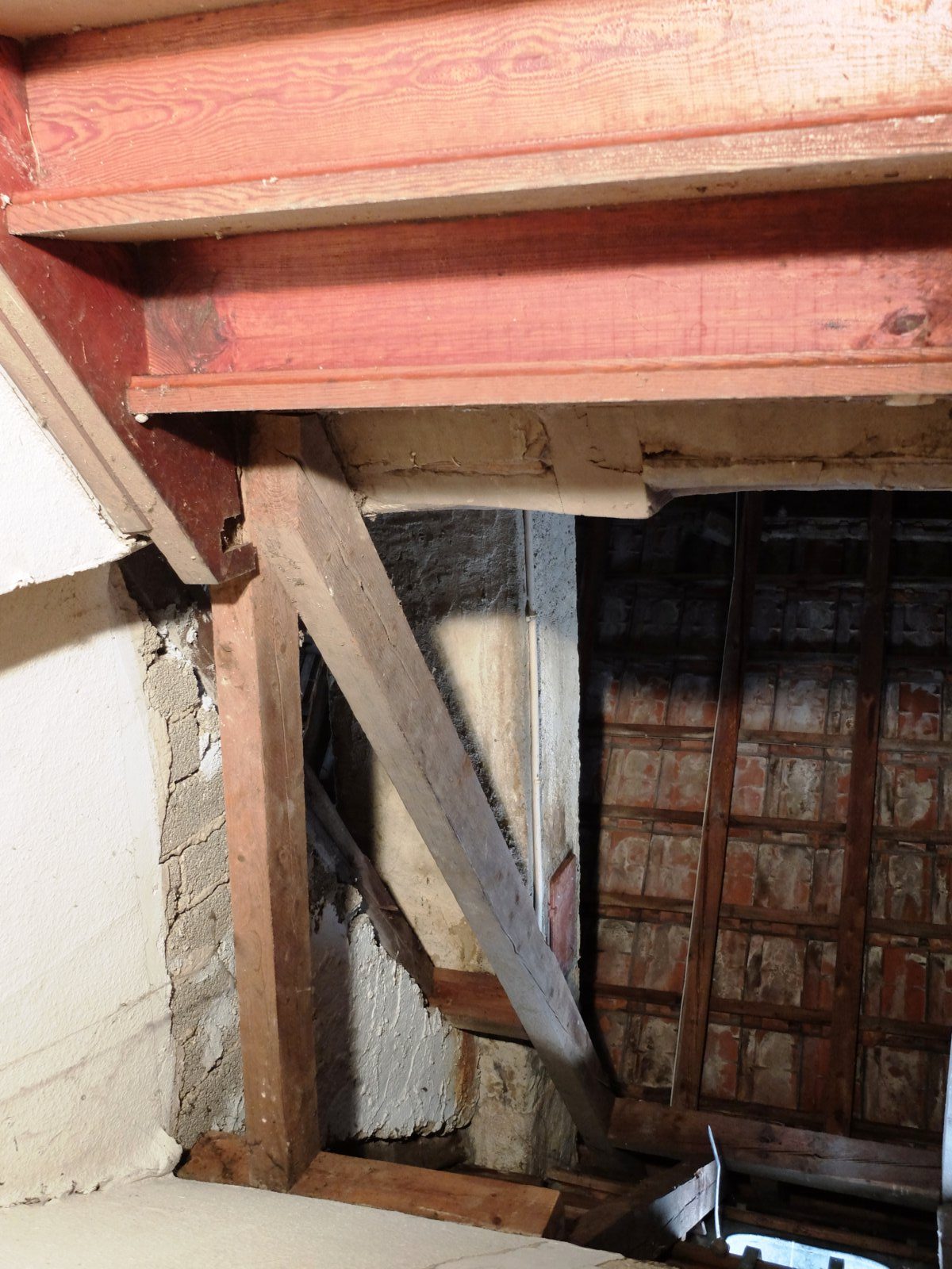 Das Haupthaus und Nebengebäude war bei Ankauf durch unsere Bauherren in einem sehr schlechten Bauzustand- typisch für die 1950-er Jahre waren dunkelbraune Fliesen, abgehängte Holzdecken, kleine Fenster und eine unpraktische und eher beengte Raumaufteilung. Außerdem war das Haus bereits von Schimmel befallen, besaß diverse unterschiedliche Bodenniveaus und eine alte, ausgetretene und marode Treppe, die nicht bestehen bleiben konnte. Dies unter anderem auch aus dem Grund, dass diese im Dachgeschoss nicht genug Kopfhöhe bot.
