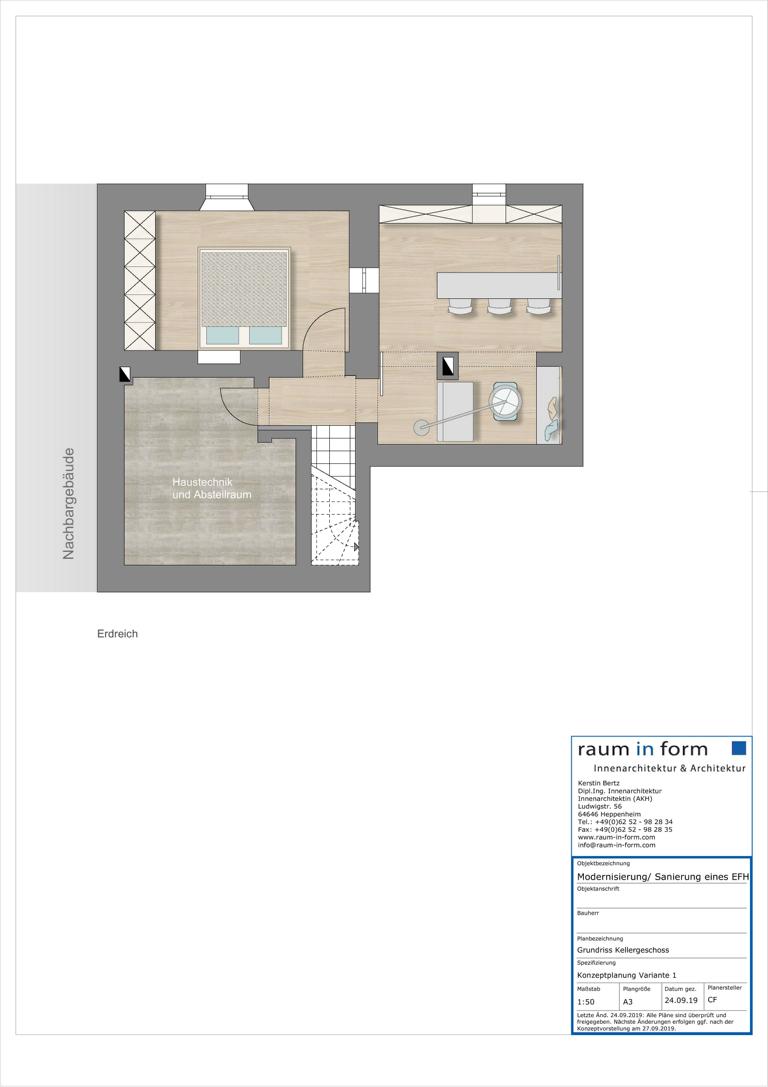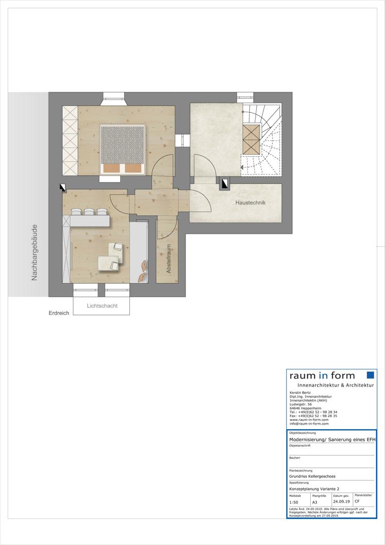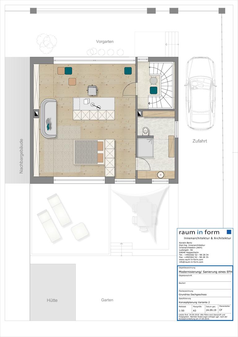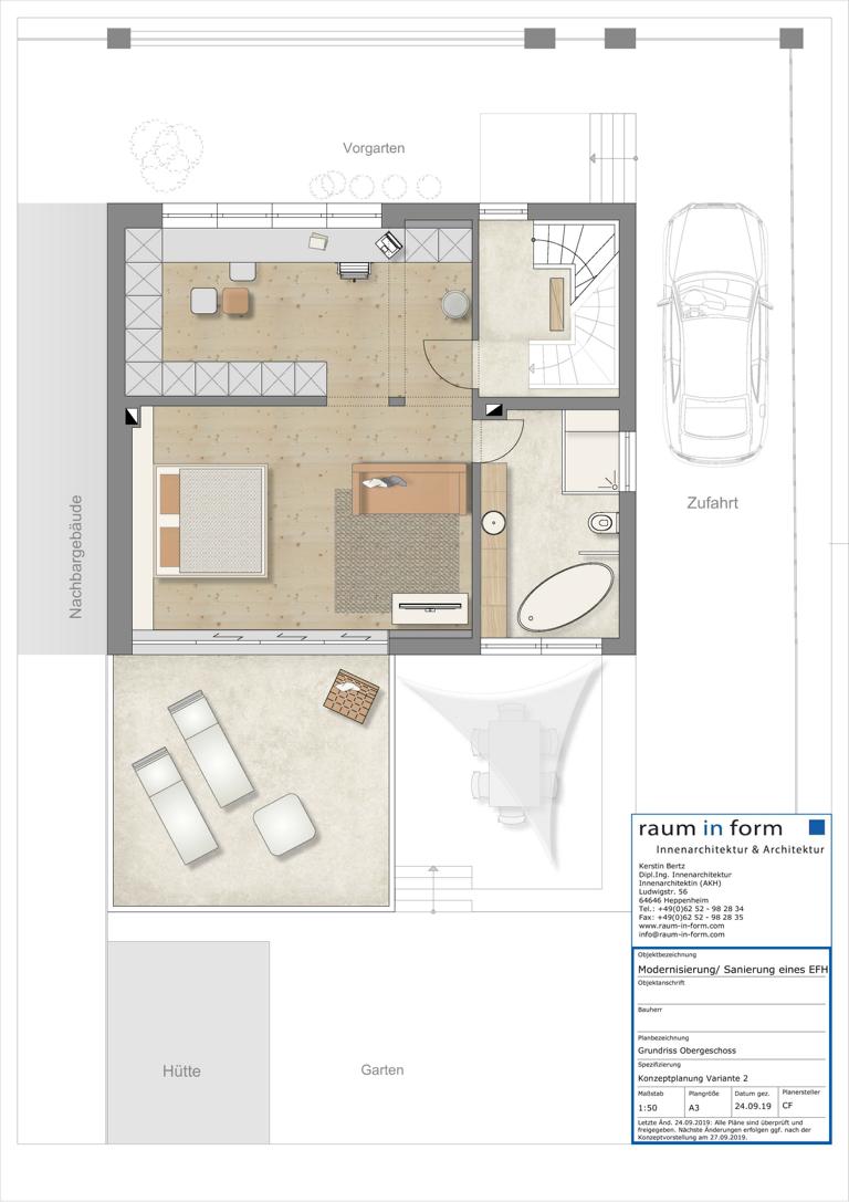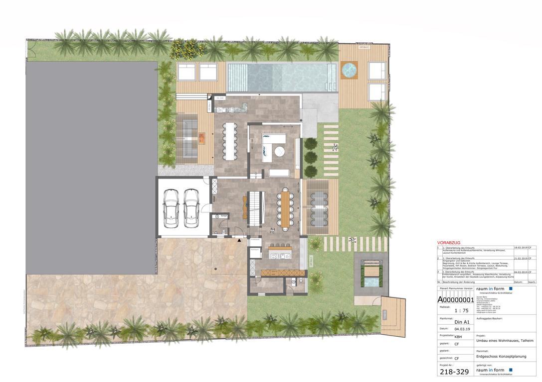 Nach der Auftragserteilung, die z. B. in einem ersten Schritt die Grundlagenerarbeitung (zu der z. B. erste Gespräche mit den genehmigungsrelevanten Behörden wie dem Bauamt gehören) sowie ein Aufmaß des Bestandsgebäudes oder des zu bebauenden Grundstücks umfassen kann, beginnt das meist mehrköpfige Projektteam unter der Leitung eines erfahrenen Architekten oder Innenarchitekten mit der Entwicklung verschiedener Konzeptionen.