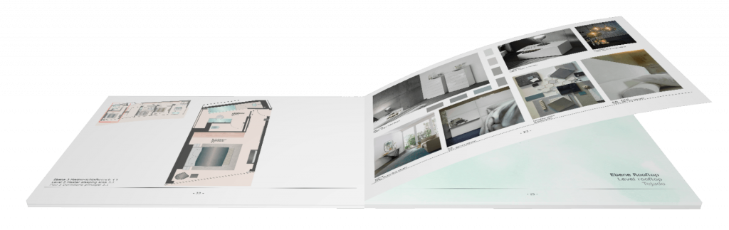 Für diese Einrichtungskonzeptionen erstellen wir für Sie und Ihr Projekt eine umfangreiche Broschüre mit einer Vielzahl von Vorschlägen, so dass Sie hinsichtlich jedes Bereichs Ihres Projekts, den Sie neu einrichten oder gestalten möchten, konkrete Vorschläge in Bezug auf Möbel, Badausstattungen, Beleuchtung, Wandgestaltungen usw. erhalten.