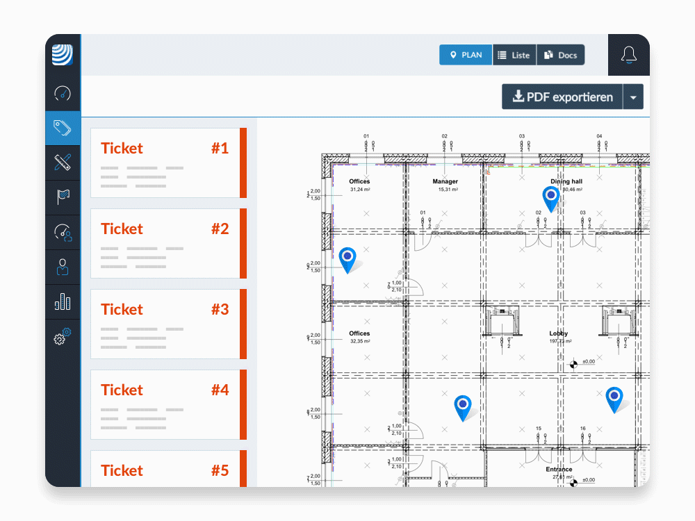 In der PlanRadar- App, die auch alle Handwerker aus dem raum in form- Handwerkernetzwerk nutzen, und auch in der PC- basierten Version können an jeder Stelle des Objekts in den digitalen Plänen Punkte gesetzt werden und mit Aufgaben, Kommentaren, Bildern sowie Sprachdateien versehen werden und zusätzliche Dokumente wie z. B. die Statik des Gebäudes hinterlegt werden. So sind alle Informationen immer an einem Ort und sofort auffindbar.