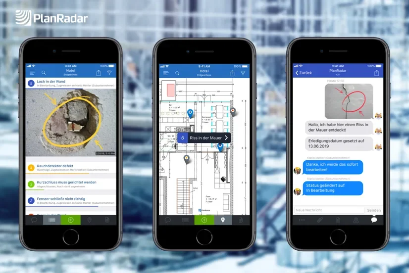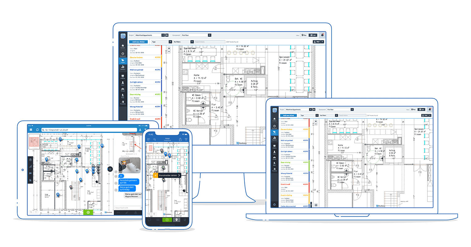 Dabei werden in der PlanRadar- Software direkt nach dem Beginn eines Projekts bereits in der Planungsphase alle Pläne eines Projekts digital in die Software eingespielt. Darüber hinaus wird das z. B. zu modernisierende Objekt vor Ort mit mobilen Geräten wie Smartphones und Tablets komplett digital erfasst.