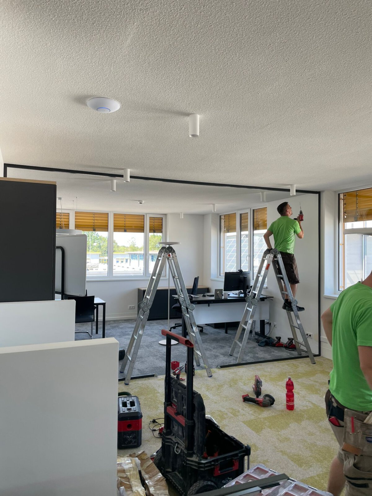 Im Mai 2021 wurde raum in form- Innenarchitektur & Architektur mit der Neukonzeptionierung sowie den Ausbau- und Modernisierungsmaßnahmen eines Firmensitzes im Raum Darmstadt, bei dem die Büroflächen zweier Gebäudeteile ausgebaut, modernisiert und neu ausgestattet werden sollten, beauftragt. Nachdem die Konzeptplanungen und Ausführungsplanungen erstellt sowie die Ausschreibung und Vergabe abgeschlossen wurden, konnte im April des Folgejahres mit dem Ausbau des 1. Bauabschnitts begonnen werden.