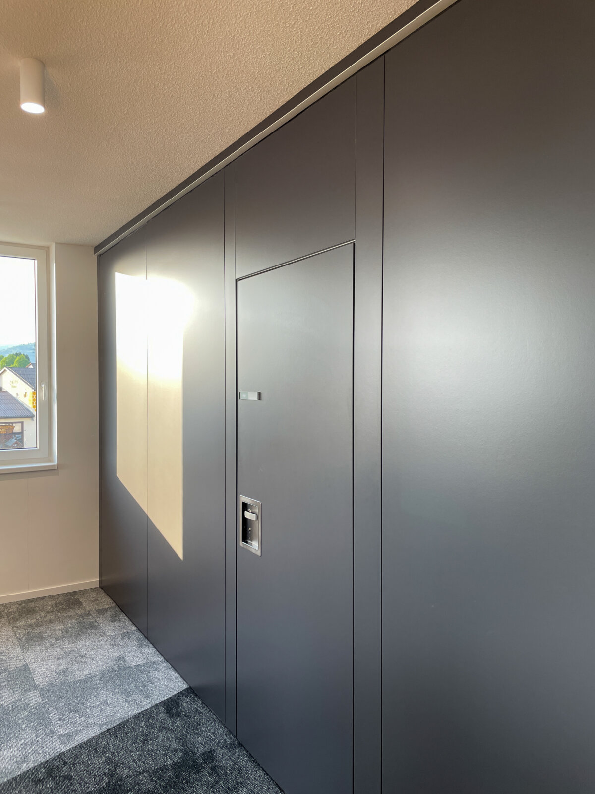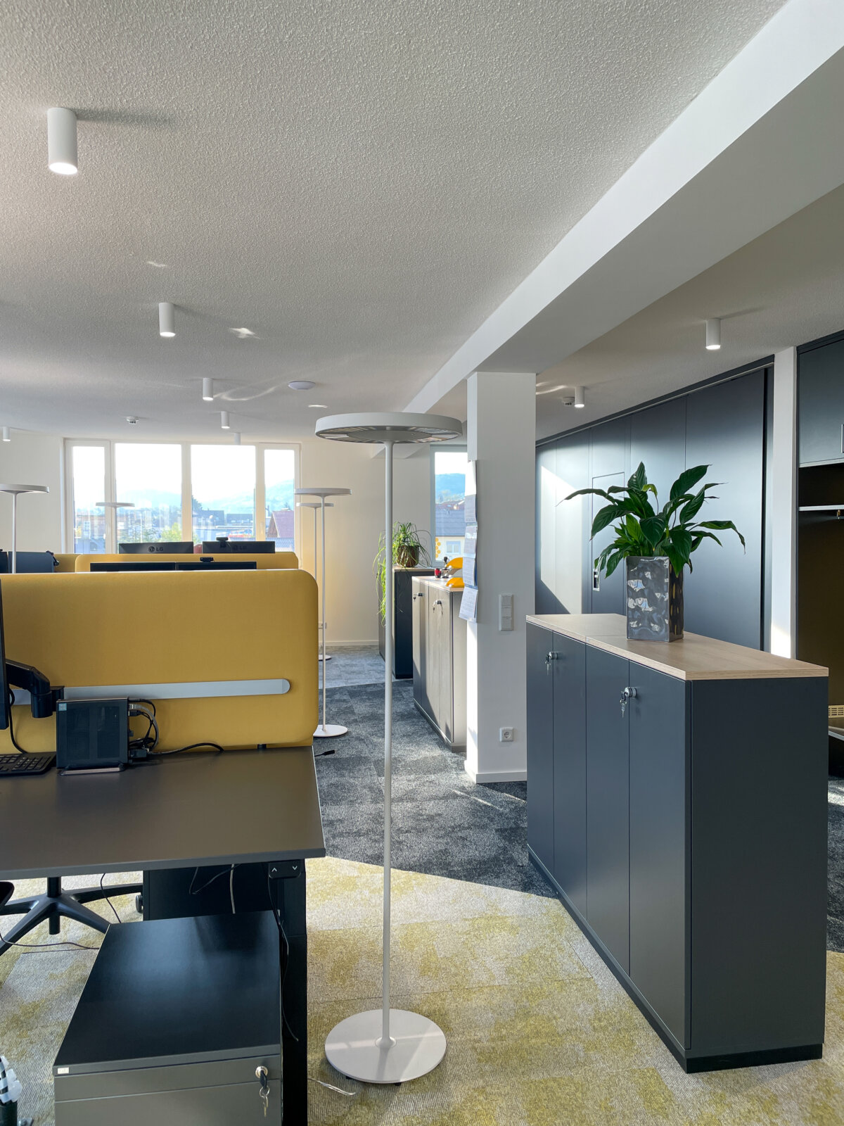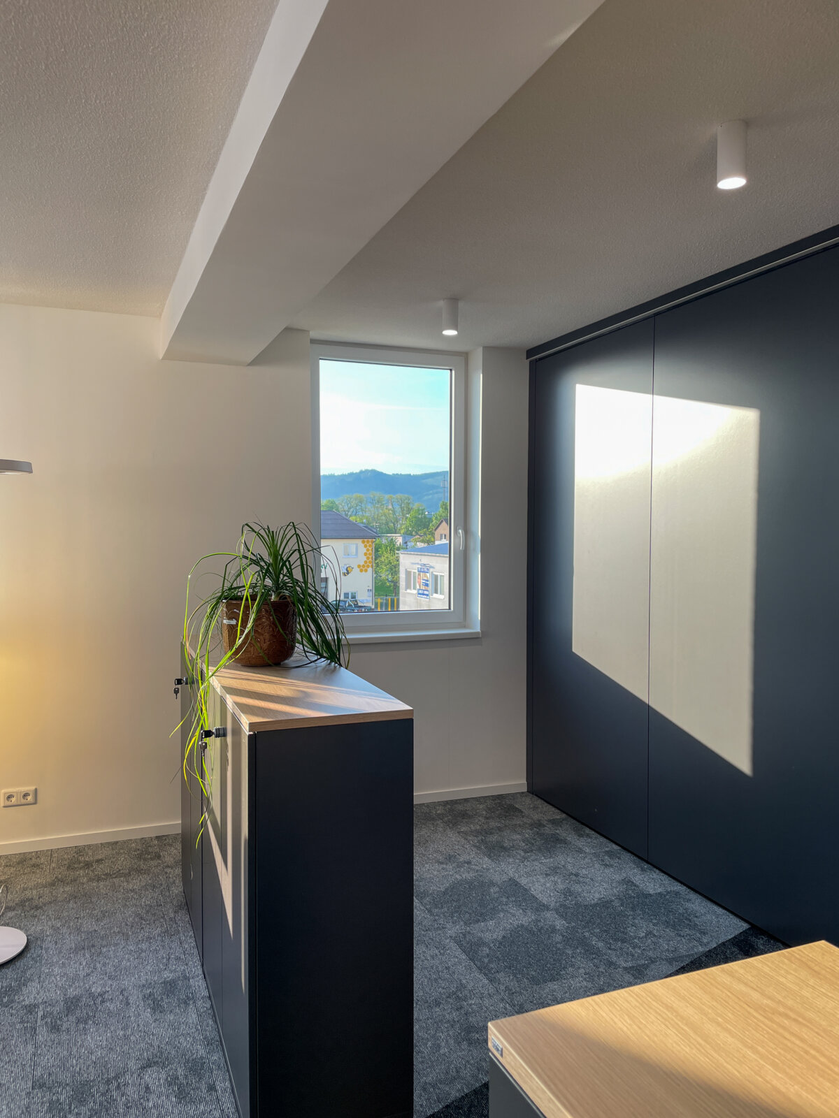 Auch für die Büroräumlichkeiten des Unternehmens wurden mehrere Konzepte erarbeitet, die sich unter Berücksichtigung der Arbeitsstättenrichtlinien und von raum in form- Innenarchitektur & Architektur entwickelter innenarchitektonischer Gestaltungsmerkmale in einem Finalkonzept zusammengeführt wurden.