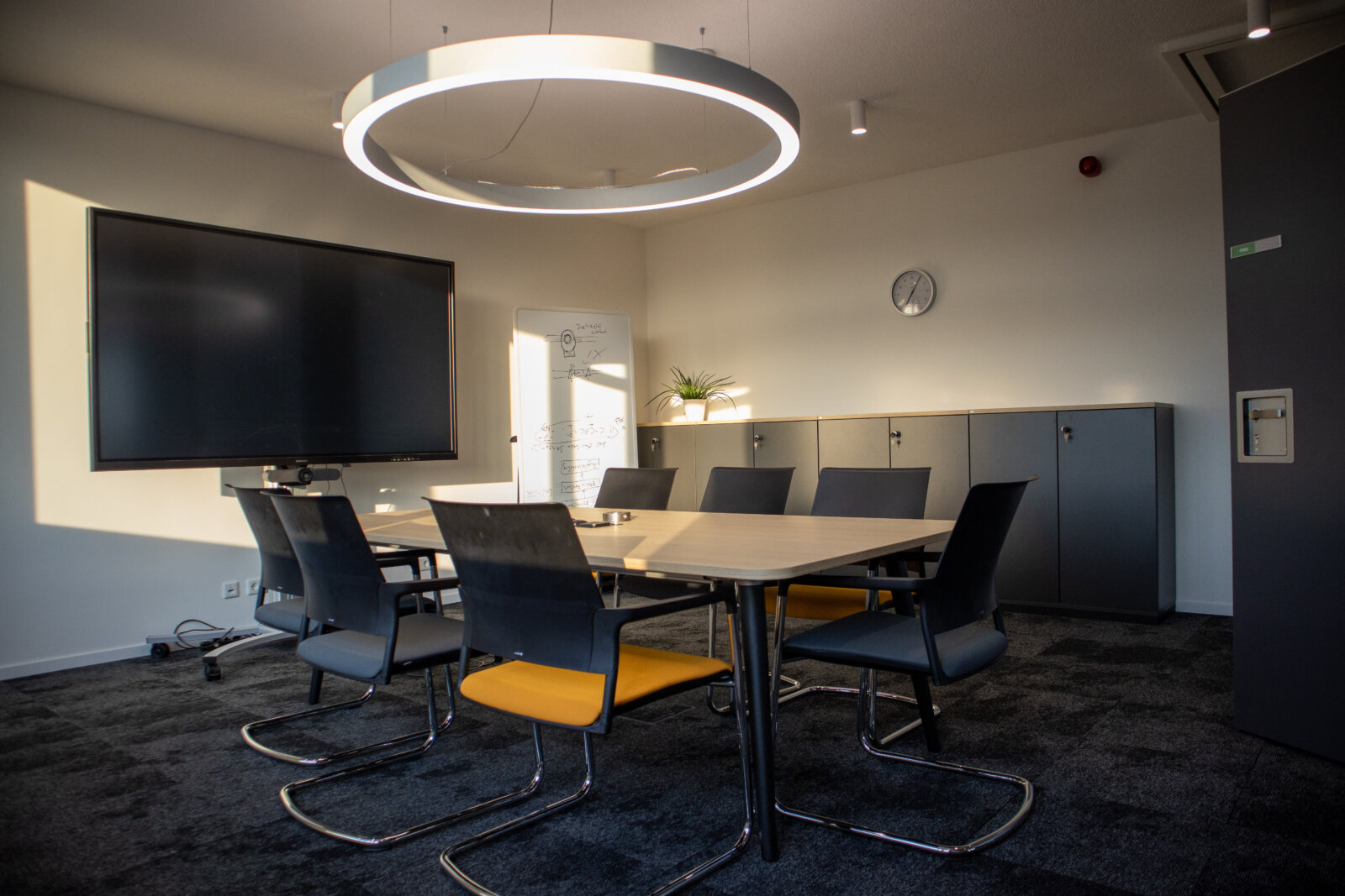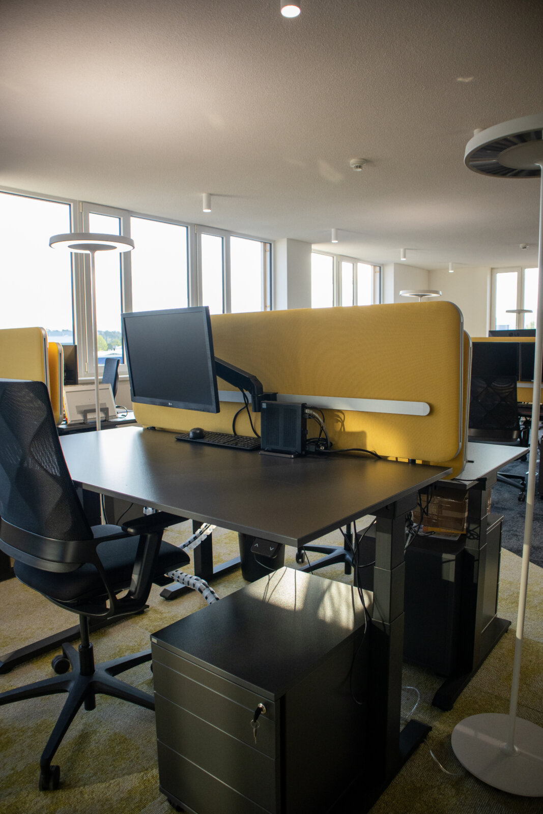 Die von dem raum in form- Projektteam erstellten Einrichtungsplanungen konnten ganzheitlich aus dem raum in form- Objekteinrichtungen- Herstellernetzwerk angeboten und geliefert werden. So konnte die Beleuchtung, das gesamte Büro-Einrichtungsmobiliar, der Fußboden, die Schallschutzelemente und Ausstattungsgegenstände aus einer Hand geboten werden.