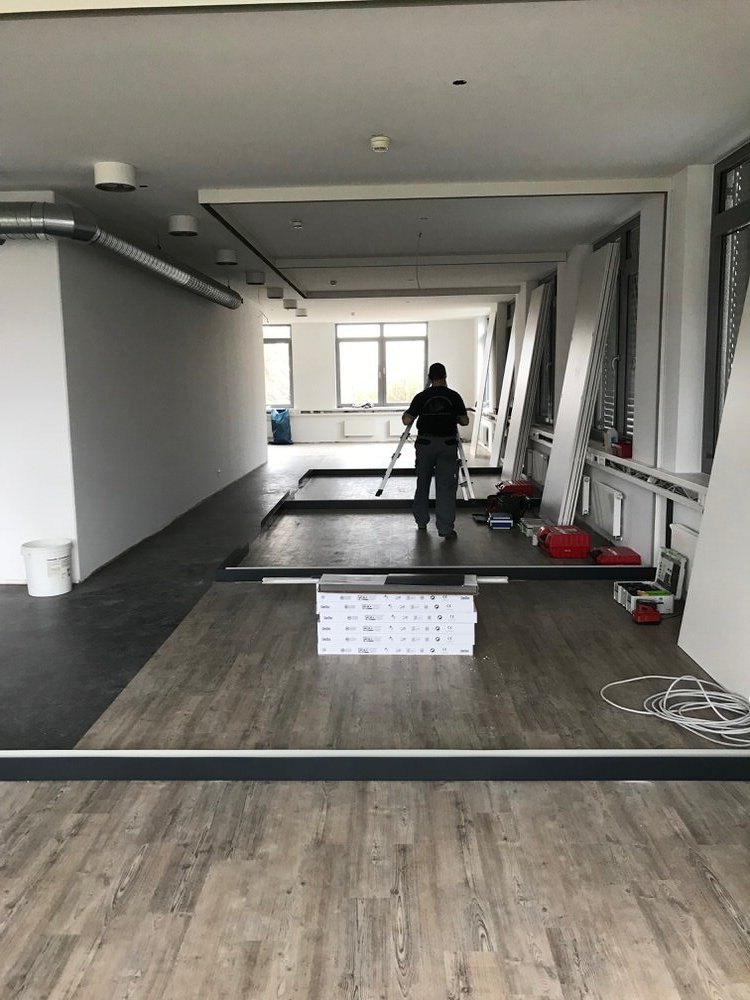 Damit der enge Zeitplan eingehalten werden konnte, wurde während dieser letzten Planungsschritte bereits mit den Ausschreibungen für die Möblierung sowie dem Verlegen des neuen Bodenbelags, den Malerarbeiten und den Elektroarbeiten begonnen. Das Projekt-Team von raum in form – Innenarchitektur & Architektur, das aus erfahrenen Innenarchitekten und Architekten bestand, koordinierte unter der Leitung von Frau Dipl. Ing. Innenarchitektur Kerstin Bertz sämtliche Baumaßnahmen und achtete neben der Qualität der Ausführung der Arbeiten insbesondere auch durch nahezu tägliche Besuche auf der Baustelle auf die Einhaltung des Bauzeitenplans, so dass der Einzug in die neuen Räumlichkeiten Mitte Dezember, nach nur drei Monaten Umbauzeit gewährleistet war.