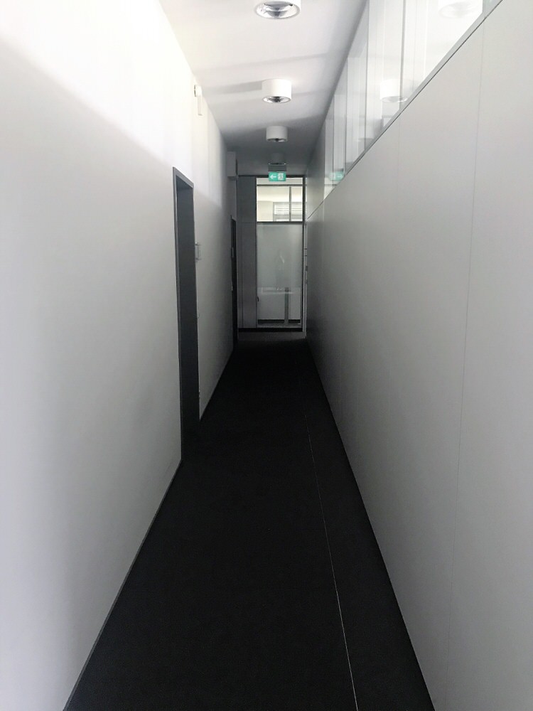 Um möglichst viel Fläche für Großraumbüros zu erhalten, wurde ein Gang um den Kern des Gebäudes angelegt, von welchem diese Büros sowie Küche, Lager und WC‘ s zu erreichen waren. Da dadurch jedoch dort kein natürliches Licht gegeben ist, war dieser Gang extrem eng und “ungemütlich”. Auch aus diesem Grund stand schnell fest, dass „Licht und Luft“ in das Gebäude zu bringen, eine Hauptaufgabe der Innenarchitekten von raum in form – Innenarchitektur & Architektur darstellen würde.