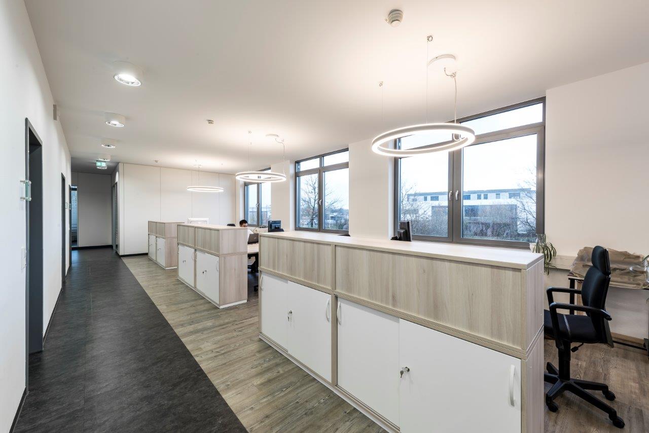 Die Fläche, in der die neuen Büroräumlichkeiten untergebracht werden sollten, wurde zunächst vollständig entkernt, da die bisherige Einteilung nicht den modernen Vorstellungen der Firmenleitung entsprach. Die einzelnen Büro- sowie Besprechungsräume sind nach den aktuellen Arbeitsschutz-, Brandschutz- und Schallschutzerfordernissen konzipiert-darüber hinaus ist ein zeitgemäßes Beleuchtungskonzept entwickelt worden, durch das verschiedene Bereiche besonders inszeniert werden. Neben der Konzeption der Modernisierungsmaßnahmen ist darüber hinaus ein ganzheitliches Einrichtungskonzept inklusive Material- und Produktvorschlägen erstellt worden, welches an die Gegebenheiten vor Ort angepasst wurde.