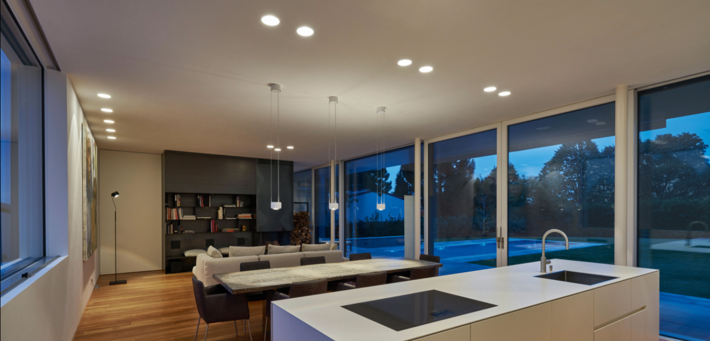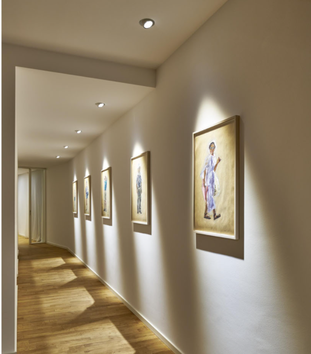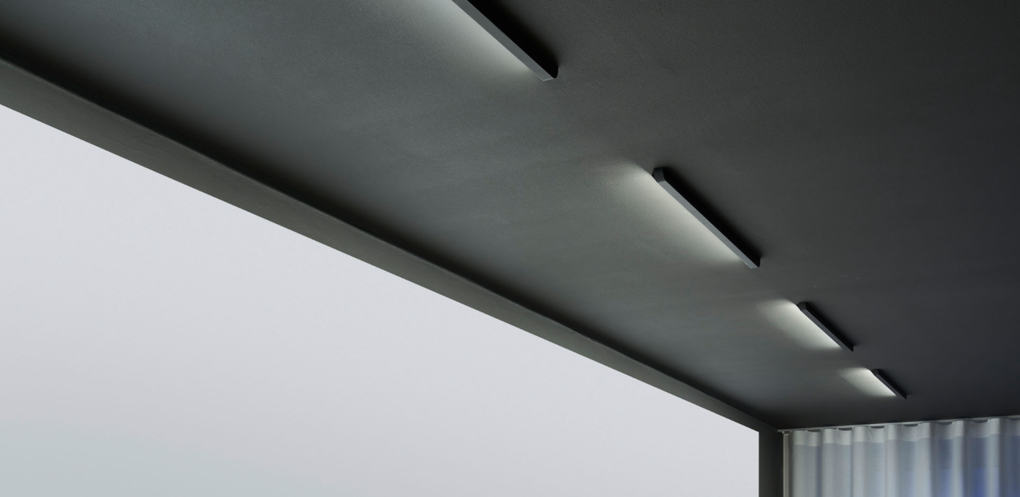 Die Leuchten dieser Kollektion lassen sich vollkommen rahmenlos an Decken und Wänden anbringen und verschmelzen somit vollständig mit dem Gebäude. Somit wird der Charakter des Raumes hervorgehoben und die Ästhetik nicht gestört.